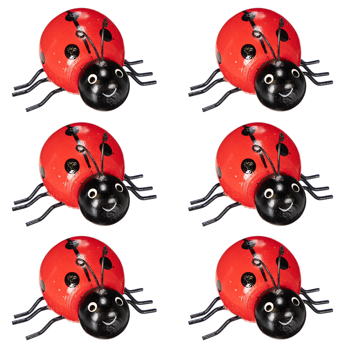 Tränyckelpigor/lyckobuggar som söta dekorationer för hemmet, 5 cm, 6 stycken