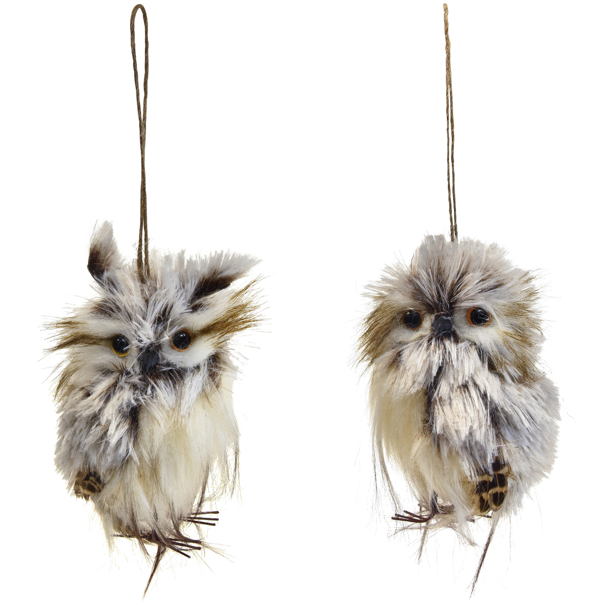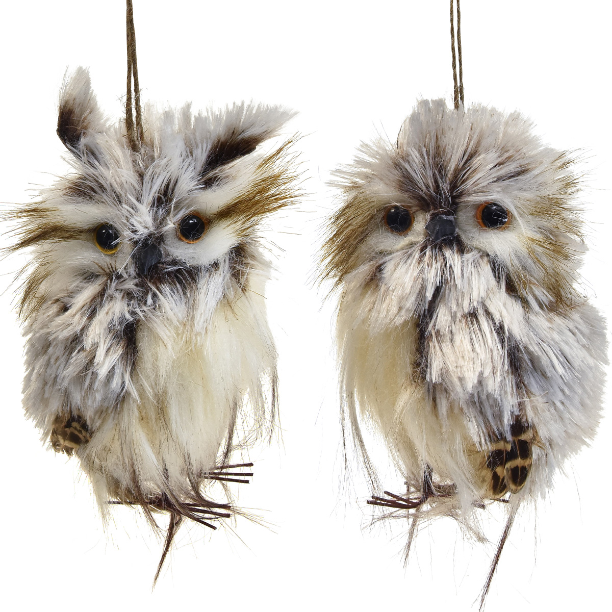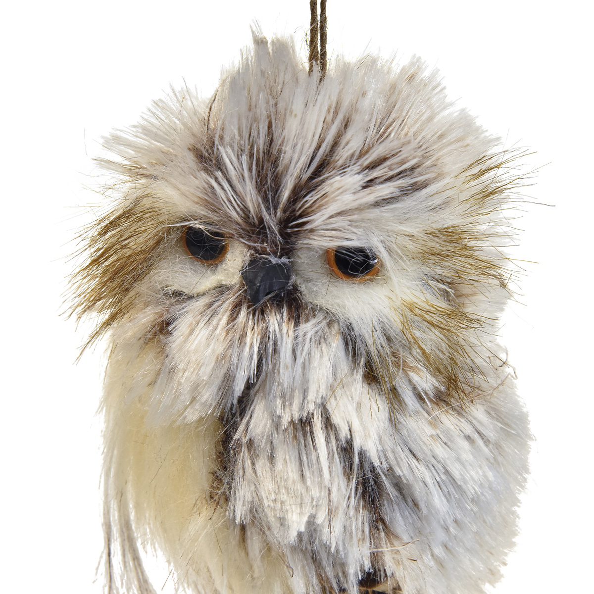 Med livliga pärlögon ser du nyfiket på omgivningen. En svart näbb och den verklighetstrogna fjäderdräkten gjord av fuskpäls kompletterar utseendet på ugglans dekorativa figurer.
