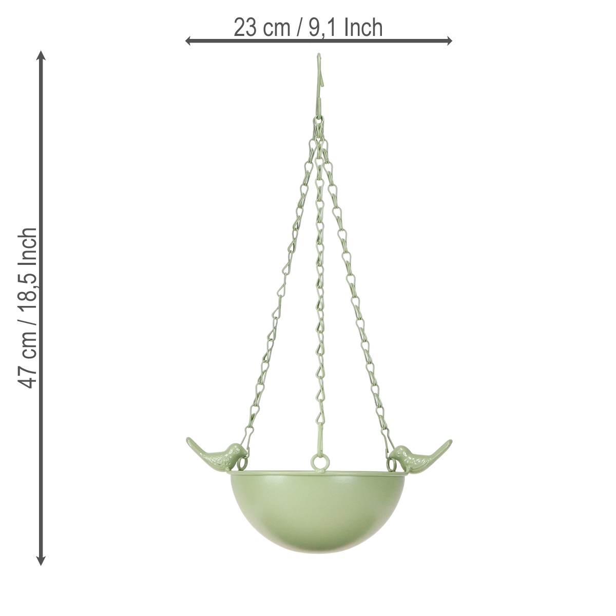 Den robusta kedjeupphängningen möjliggör säker fastsättning på grenar, balkongräcken eller små krokar på uteplatsen. Den väderbeständiga, robusta metallkonstruktionen är särskilt praktisk och garanterar många års njutning av denna fågelmatare. De två dekorativa fåglarna ger mataren en lekfull elegans, vilket gör den till det perfekta tillskottet för älskare av lantlig stil eller naturinspirerad inredning.