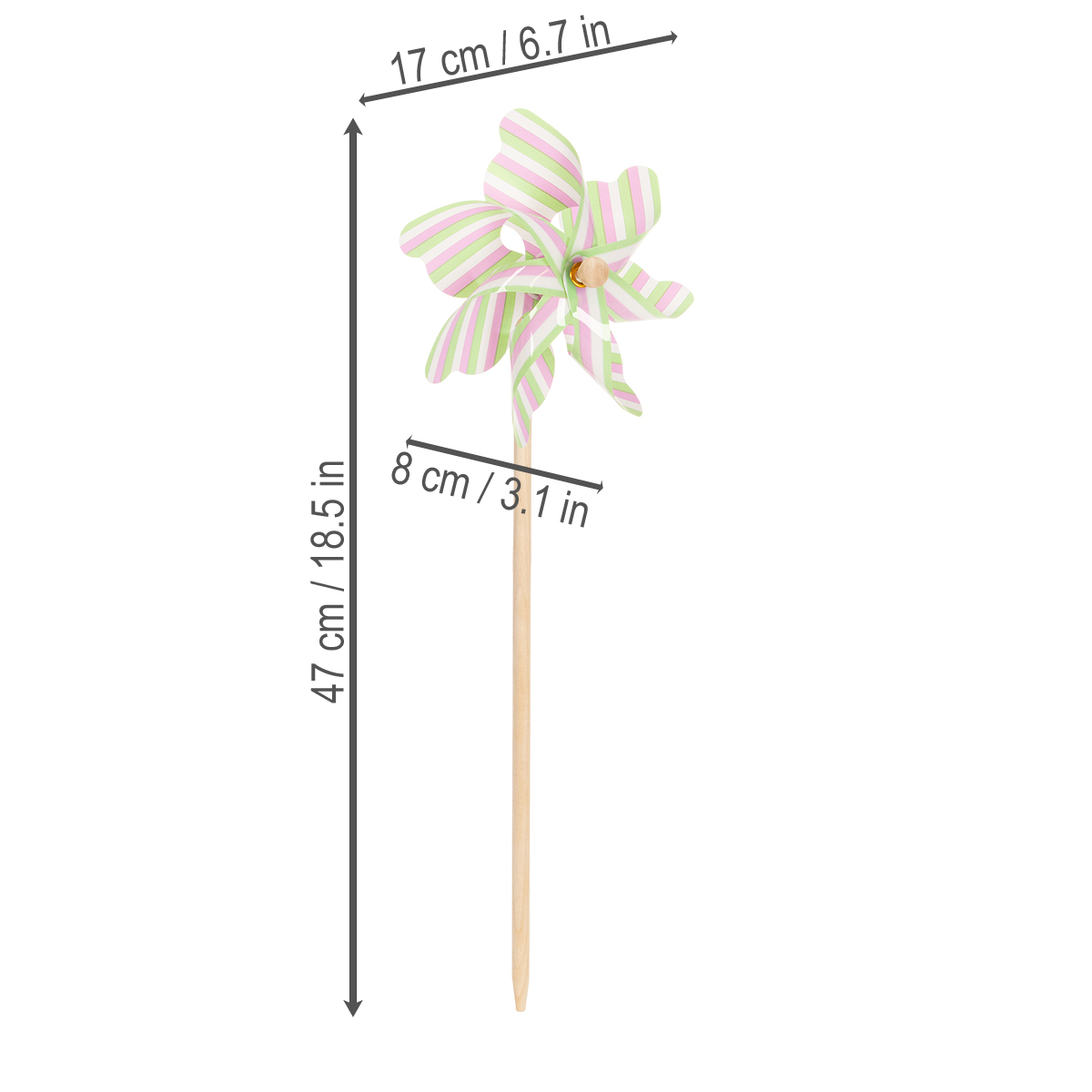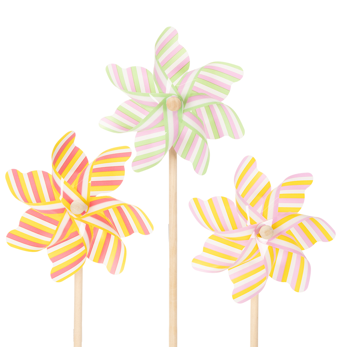 - Set bestående av 3 randiga väderkvarnar i fina pastellfärger