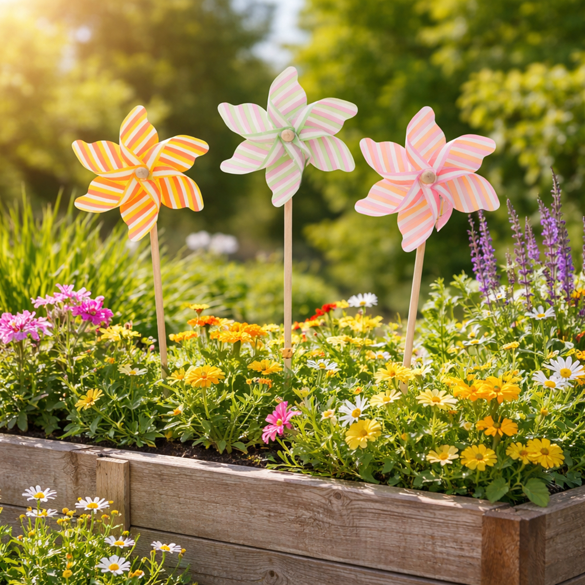 Tips: Kombinera väderkvarnarna med andra utomhusdekorationer i en rustik eller lekfull stil, såsom lyktor, spaljéer eller små trädgårdsskyltar. Detta skapar ett harmoniskt helhetsintryck som kombinerar atmosfär och stil.