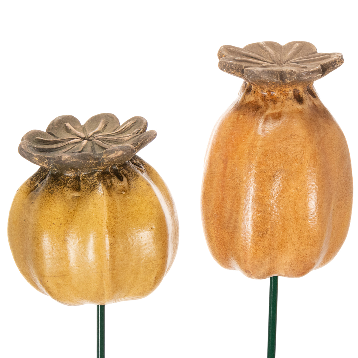 Trädgården är en plats att koppla av och varva ner på, och rätt detaljer kan spela en avgörande roll. Våra trädgårdsstänger med vallmofröhuvuden är ett riktigt blickfång för ditt utomhusutrymme. Den klassiska vallmofröhuvudformen, i kombination med den varma, bruna keramiken och en diameter på 7 cm, smälter harmoniskt in i vilken grön oas som helst. Setet med två stänger är särskilt lämpligt om du vill lägga till snygga detaljer i rabatter eller krukor.