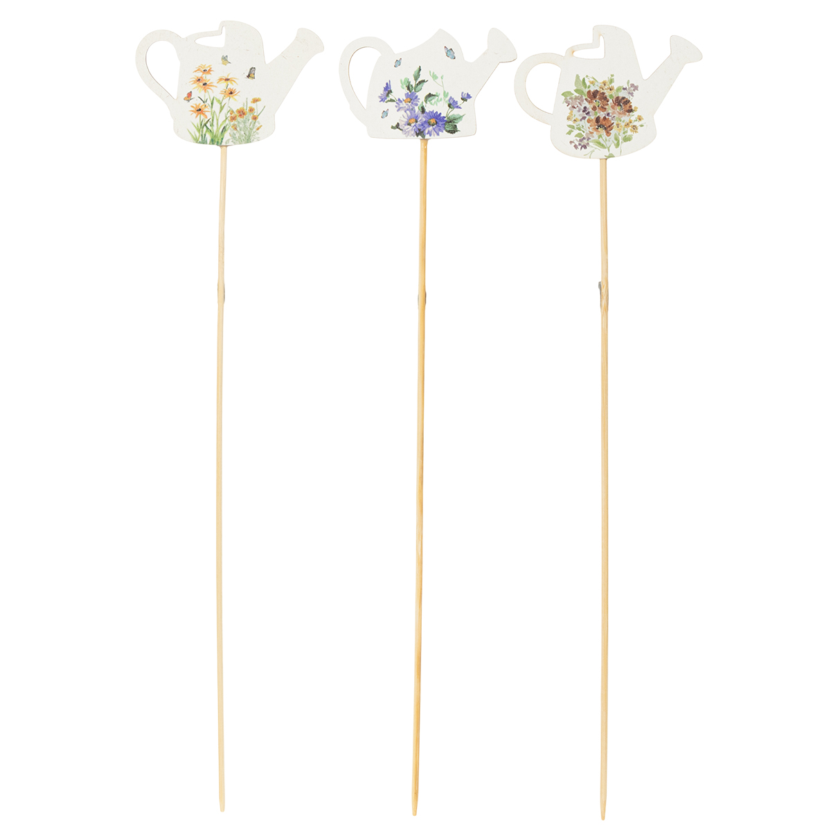 Våra dekorativa vattenkannastänger kombinerar det bästa av dekoration och funktionalitet. De är 34 cm höga och har en robust trästång, vilket gör att de enkelt kan placeras i jord, mossa eller blommigt skum. De fina blommotiven i uppfriskande naturliga färger ger en speciell touch till alla arrangemang.