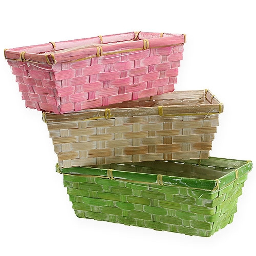 Varje kvadratisk planteringskorg från den mångfärgade uppsättningen har dimensionerna ungefär 20 x 11 x 7 centimeter. Fotavtrycket mäter ungefär 16 x 7 centimeter. I uppsättningen med 8 stycken finns färgerna rosa och grönt tillgängliga tre gånger vardera, färgen är naturlig två gånger.